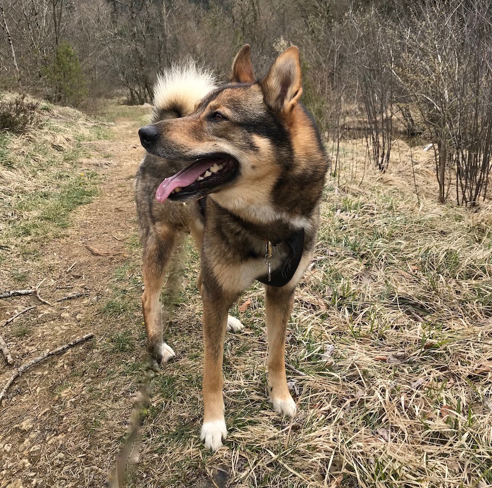 He loves to play with his girlfriend Purga and has a very open friendly character towards people also children. He is an independently, smart dog who sees, hears and smells everything and in the forest of leash he is starting immediately to search for other animals.
