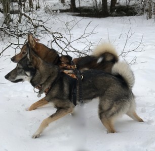 He is primarily a hunting dog, so ever one who decides on a puppy of this breed should expect a full package of traits of a typical hunting Spitz. This means that if he has an opportunity to hunt he will chase game and can disapear for some hours, also from the place where you live. He will not just stay 50 meters from you or the house like a guardian dog will do, so dangerous with busy roads in the neighbourhood.